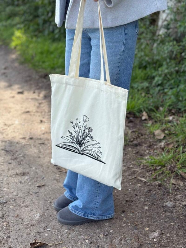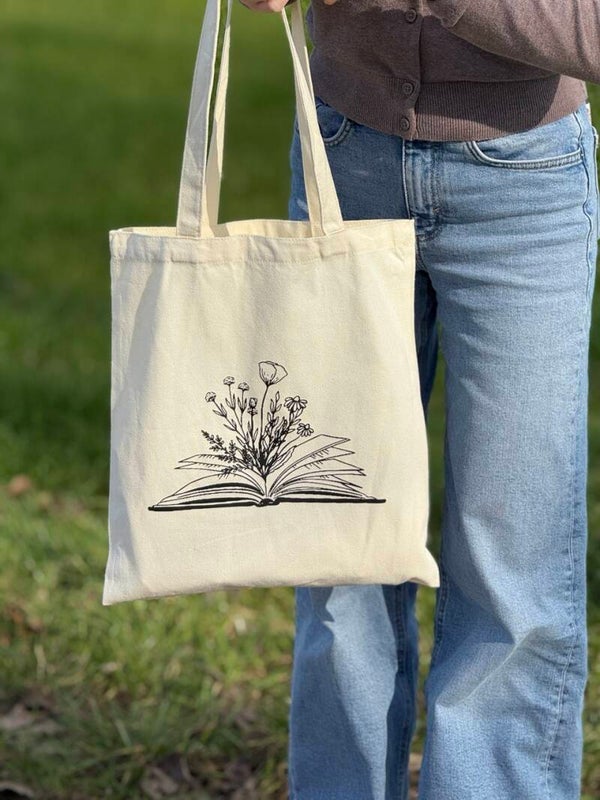 Met deze canvas tas laat je aan iedereen zien dat lezen altijd een goed idee is. De 'Bookish Flowers' print maakt hem stijlvol en praktisch voor al je dagelijkse uitstapjes, of je nu naar de boekwinkel gaat of gewoon een wandeling maakt. Ook is deze mooie canvas tas beschikbaar in 2 verschillende kleuren, beige en zwart!